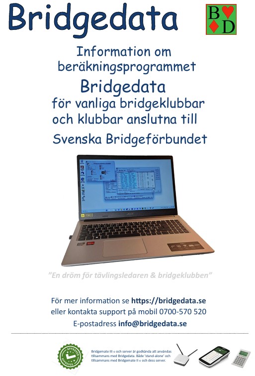 För mera information ring Lars Zetterberg Bridgedata 0700-570 520 |