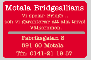 Motala Bridgeallians, Fabriksgatan 8, 591 60 Motala - 0141-21 19 57 |